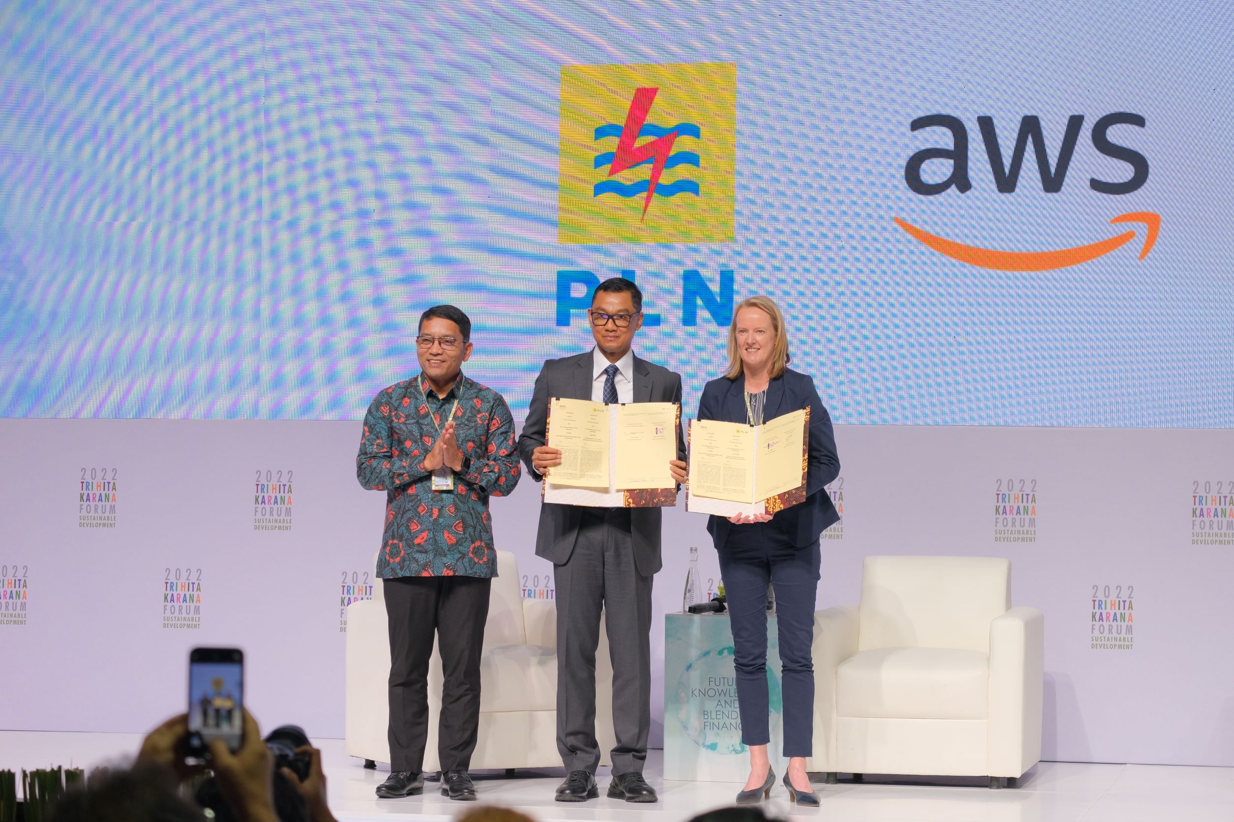 Dadan Kusidiana, Director General for Renewable Energy at the Energy Ministry, ESDM; Darmawan Prasodjo, President Director of PT PLN (Persero); and Carly Wishart, Managing Director, Data Center Planning & Delivery for Asia-Pacific, Japan & China, Amazon Web Services