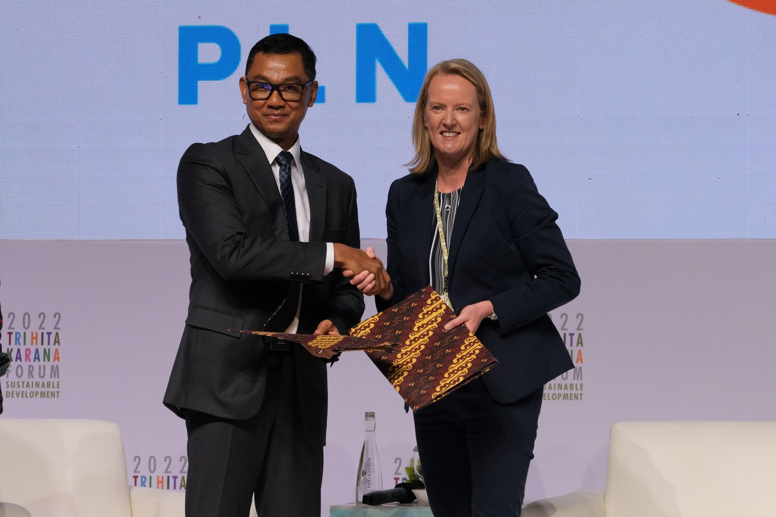 Darmawan Prasodjo, President Director of PT PLN (Persero); and Carly Wishart, Managing Director, Data Center Planning & Delivery for Asia-Pacific, Japan & China, Amazon Web Services