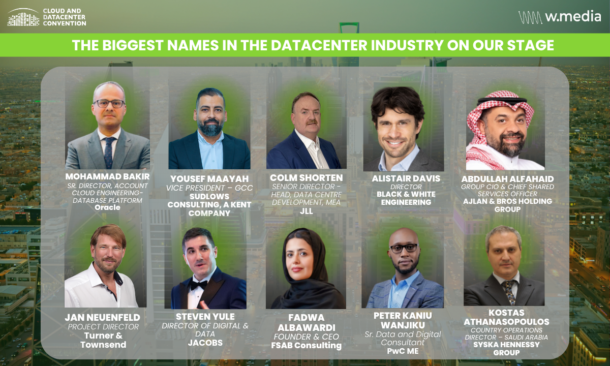 Some of our speakers include: Mohammad Bakir (Sr. Director, Account Cloud Engineering, Database Platform, Oracle), Yousef Maayah (Vice President – GCC, Sudlows Consulting, A Kent company), Colm Shorten (Senior Director – Head, Data Centre Development, MEA, JLL), Alistair Davis (Director, Black & White Engineering), Kostas Athanasopoulos, (Country Operations Director – Saudi Arabia, Syska Hennessy), Jan Neuenfeld (Project Director, Turner & Townsend), Steven Yule (Director of Digital and Data – Middle East, Jacobs), Fadwa AlBawardi (Founder & CEO, FSAB Consulting), Abdullah Alfahaid (Group CIO & Chief Shared Services Officer, Ajlan & Bros Holding Group), Peter Kaniu (Senior Data and Digital Consultant- PWC, ME) and many more!